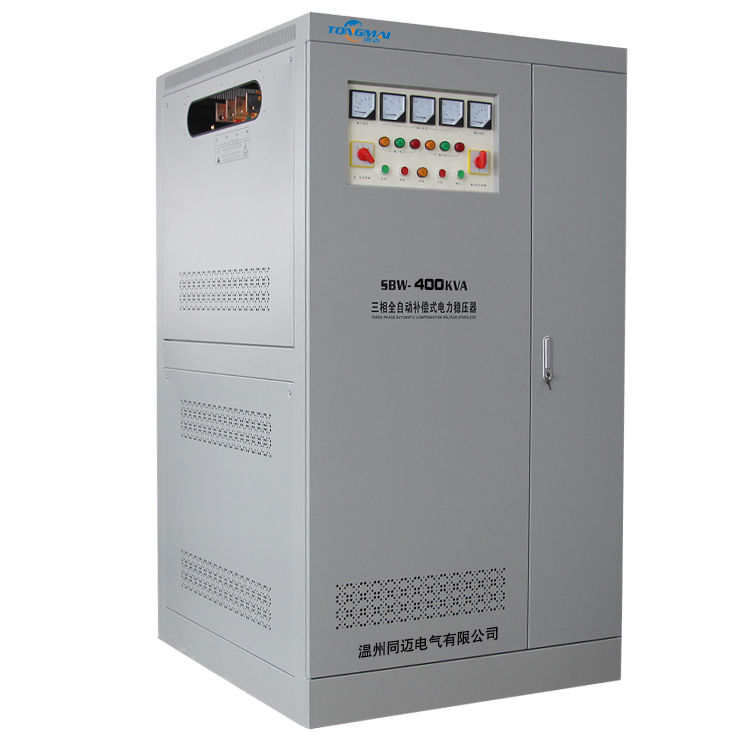 SBW5、DBW5系列三相全自動補償式電力穩壓器,是同邁公司整合國內外三相穩壓器產品,且結合全球各地電網復雜環境,自主研發的一款穩定交流電壓而設計的交流全自動穩壓器;當外界的供電網絡電壓波動或負載變化而造成電壓波動時,能自動保持輸出電壓的穩定,SBW三相380V大功率穩壓器與其它型式穩壓器相比具有容量大、效率高、無波形畸變、電壓調節平穩等優點,適用負載廣泛,能隨承受瞬時超載,可長期連續工作,手動/自動隨意切換,設有過壓、過流、缺相、相序保護及機械故障自動保護,以及體積小、重量輕、使用安裝方便、運行可靠等優點。